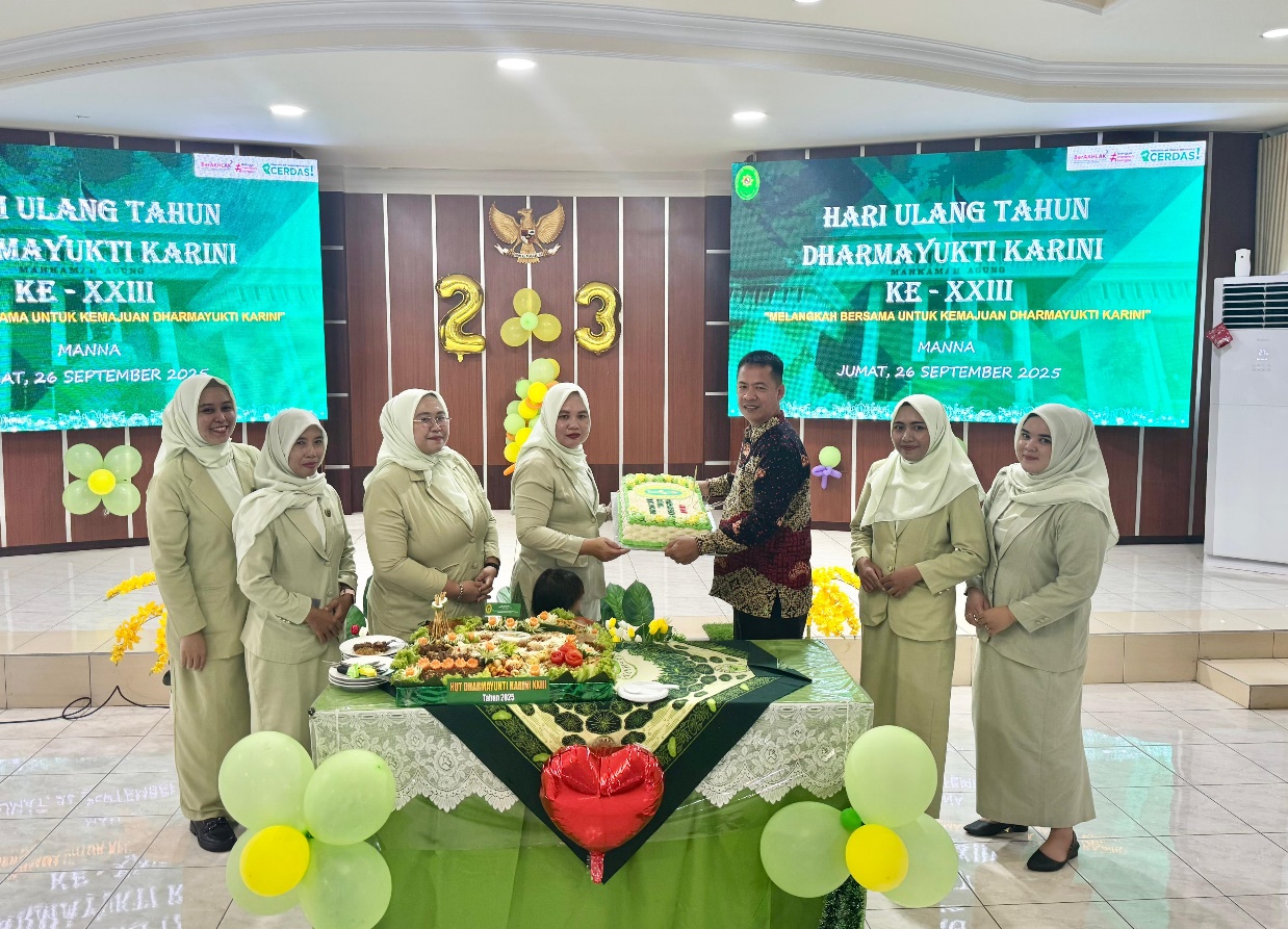 Melalui momentum HUT ke-23 ini, diharapkan Dharmayukti Karini, khususnya Cabang Manna, dapat terus mempererat solidaritas, meningkatkan peran aktif dalam mendukung tugas-tugas peradilan, serta memberikan kontribusi positif bagi masyarakat. (ARM)