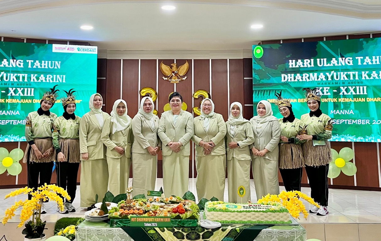 Bengkulu, 26 September 2025 – Dharmayukti Karini Cabang Manna turut berpartisipasi dalam peringatan Hari Ulang Tahun (HUT) ke-23 Dharmayukti Karini Tahun 2025 yang dilaksanakan di Pengadilan Tinggi Bengkulu. Kegiatan ini mengusung tema “Melangkah Bersama untuk Kemajuan Dharmayukti Karini” dan dihadiri oleh seluruh pengurus dan anggota Dharmayukti Karini se-Provinsi Bengkulu.